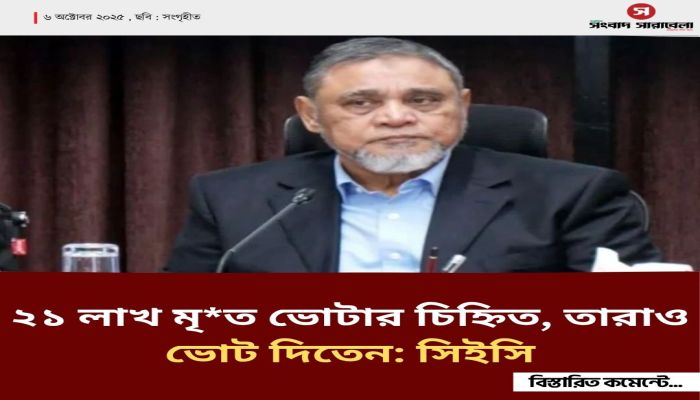 ভোটার তালিকা হালনাগাদে ২১ লাখ মৃত ভোটার শনাক্ত করা হয়েছে বলে জানিয়েছেন প্রধান নির্বাচন কমিশনার (সিইসি) এ এম এম নাসির উদ্দিন। তিনি জানিয়েছেন, এদের অনেকেই অতীতে ভোট দিয়েছেন।