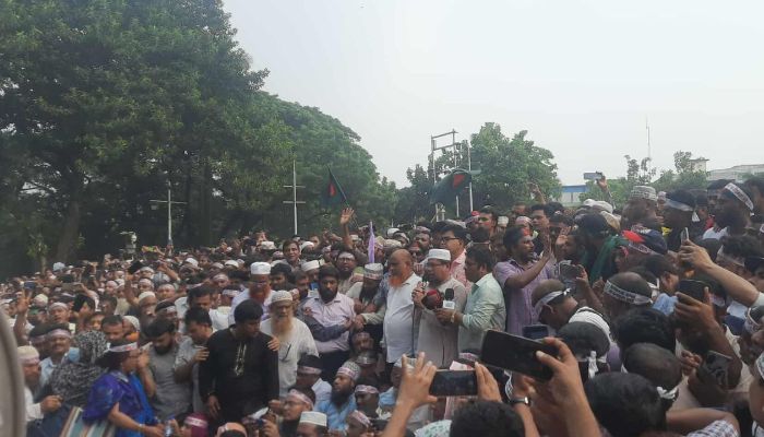 মাওলানা দেলাওয়ার হোসেন আজিজী বলেন, আজকে আমাদের এখানে ডাকা হয়েছে সমস্যা সমাধানের জন্য। আমরাও চাই সমস্যা সমাধান করে আমরা শ্রেণি কক্ষে ফিরে যাব। কিন্তু আজকে আসার পর তারা আগের সিদ্ধান্ত থেকে একচুলও সরতে রাজি না। তারা আলোচনার নামে আই ওয়াশ করেছেন। তারপর আমরা আজকে আরেকটি প্রস্তাব দিয়েছি সেখানে আমরা বর্তমান বাজেট থেকে ১০ শতাংশ বাড়ি ভাড়া এবং আগামী বাজেট থেকে ১০ শতাংশ বাড়ি ভাড়া দেবেন। সেই বিষয়টা উল্লেখ করে প্রজ্ঞাপন করতে হবে। সেটা পুনঃবিবেচনার জন্য বলেছিলাম। সেটা তারা করেননি। তারপর আমরা বলেছি আমাদের পক্ষে এই সমস্যা কোনোভাবে ম্যানেজ করা সম্ভব না। আমরা এটা পারবো না। এরপর উপদেষ্টা উঠে চলে গেছেন এবং আমরাও চলে আসছি।
