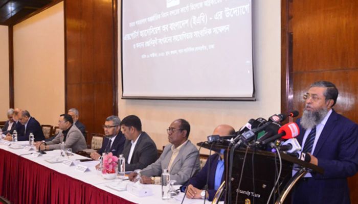 সংবাদ সম্মেলনে লিখিত বক্তব্য দেন ইএবি ও নিট তৈরি পোশাক প্রস্তুত ও রপ্তানিকারক সমিতির (বিকেএমইএ) সভাপতি মোহাম্মদ হাতেম।