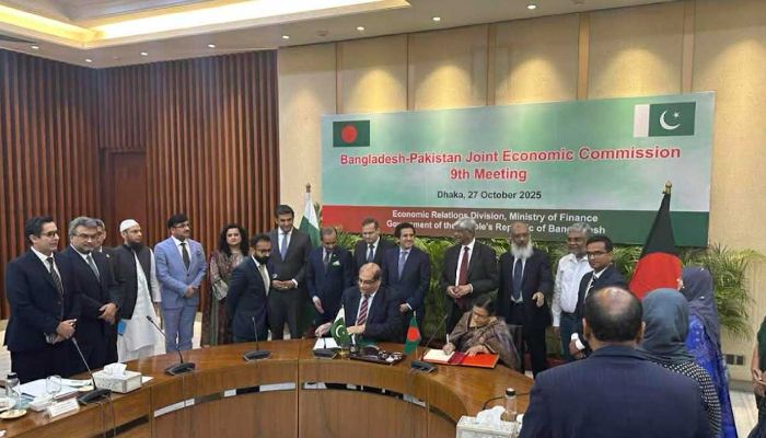 দীর্ঘ ২০ বছর পর অনুষ্ঠিত হলো বাংলাদেশ ও পাকিস্তানের মধ্যে নবম যৌথ অর্থনৈতিক কমিশনের (জেইসি) বৈঠক। দুই দেশের মধ্যে দ্বিপক্ষীয় বাণিজ্য ও অর্থনৈতিক সহযোগিতা বাড়ানোর লক্ষ্যেই এই গুরুত্বপূর্ণ আলোচনা অনুষ্ঠিত হয়। বৈঠকে কৃষি গবেষণা, হালাল ফুড, তথ্যপ্রযুক্তি ও নৌপরিবহনসহ কয়েকটি বিষয়ে সমঝোতা স্মারক (এমওইউ) নিয়ে আলোচনা হয়।