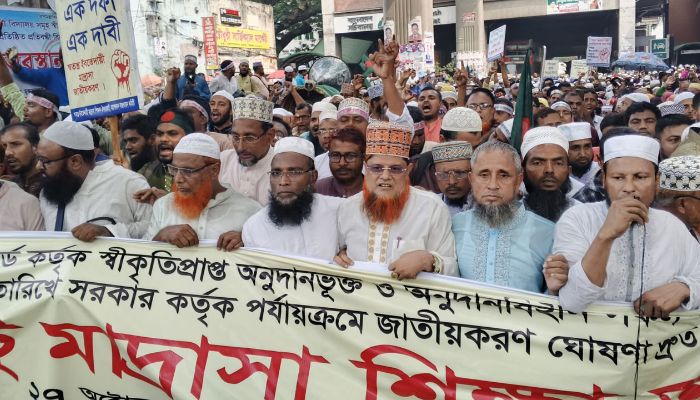 ইবতেদায়ী মাদ্রাসা শিক্ষা কার্যক্রম জাতীয়করণের দাবিতে দীর্ঘ ১৪ দিন ধরে আন্দোলন করে যাচ্ছেন শিক্ষকরা। ধারাবাহিক কর্মসূচির অংশ হিসেবে আজ (সোমবার) জাতীয় প্রেস ক্লাব থেকে মাদরাসা শিক্ষা অধিদপ্তর অভিমুখে লং মার্চ করেন আন্দোলনরত শিক্ষকরা।