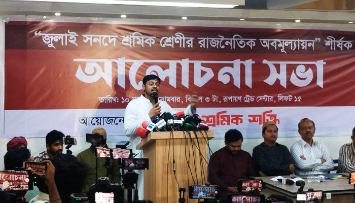 সোমবার (১০ নভেম্বর) বিকেলে ‘জুলাই সনদে শ্রমিক শ্রেণির রাজনৈতিক অবমূল্যায়ন’ শীর্ষক আলোচনা সভায় এ কথা বলেন তিনি।