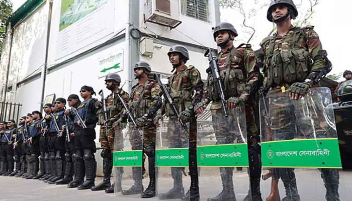 সরেজমিনে সুপ্রিম কোর্টের আপিল বিভাগ, হাইকোর্ট ও মাজার-সংলগ্ন আন্তর্জাতিক অপরাধ ট্রাইব্যুনাল এলাকায় দেখা গেছে, সেনাবাহিনী, র্যাব, বিজিবি, ঢাকা মেট্রোপলিটন পুলিশ (ডিএমপি) এবং আর্মড পুলিশ ব্যাটালিয়ন (এপিবিএন) সদস্যরা সতর্ক অবস্থানে রয়েছেন। সেখানে বিজিবি ও ডিএমপির সাঁজোয়া যানও রাখা হয়েছে। আইনশৃঙ্খলা বাহিনীর সদস্যদের বরাত দিয়ে জানা গেছে, সেনাবাহিনীর টহল দল আশপাশের এলাকাতেও অবস্থান করছে।