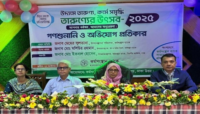তারুণ্যের উৎসব ২০২৫ উদযাপনের নিমিত্ত Flagship Program “গ্রাহক সেবা পক্ষ” ২৭ অক্টোবর ২০২৫ তারিখ কর্মসংস্থান ব্যাংকের মোট ৩৩টি অঞ্চলের ৩৩টি শাখায় একযোগে গণশুনানী এবং অভিযোগ প্রতিকার বিষয়ক কর্মসূচি অনুষ্ঠিত হয়েছে।