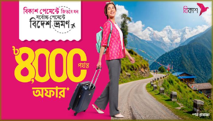 ভ্রমণপ্রেমীদের বেড়ানোকে আরও আনন্দময় ও সাশ্রয়ী করতে এবার বিমান, বাস টিকেট ও হোটেল বুকিংয়ে প্রতি মাসে বিকাশ-এ সর্বোচ্চ পেমেন্টকারী পাচ্ছেন নেপাল বা মালদ্বীপ ভ্রমণের সুযোগ।