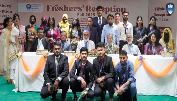 ইন্টারন্যাশনাল স্ট্যান্ডার্ড ইউনিভার্সিটির (আইএসইউ) মহাখালী ক্যাম্পাসে বৃহস্পতিবার সকালে অনুষ্ঠিত হলো ফল-২০২৫ সেমিস্টারের শিক্ষার্থীদের নবীন বরণ। আইএসইউ উপাচার্য প্রফেসর ড. আব্দুল আউয়াল খানের সভাপতিত্বে এ আয়োজনে বিশেষ অতিথি হিসেবে উপস্থিত ছিলেন বোর্ড অব ট্রাস্টিজের সদস্য ইঞ্জিনিয়ার তাসমিয়া রহমান।