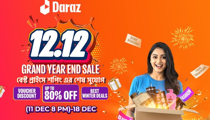 বছরের শেষ প্রান্তে এসে আবারও গ্রাহকদের জন্য বড়সড় কেনাকাটার আয়োজন নিয়ে হাজির হচ্ছে দারাজ বাংলাদেশ। ১১ ডিসেম্বর রাত ৮টা থেকে শুরু হয়ে ১৮ ডিসেম্বর ২০২৫ পর্যন্ত চলবে ১২.১২ গ্র্যান্ড ইয়ার-এন্ড সেল, যেখানে গ্রাহকেরা পাবেন বছরের শেষ মুহূর্তে পছন্দের পণ্য কেনার সুযোগ, আকর্ষণীয় ছাড়, এবং বৈচিত্র্যময় কেনাকাটার অভিজ্ঞতা।