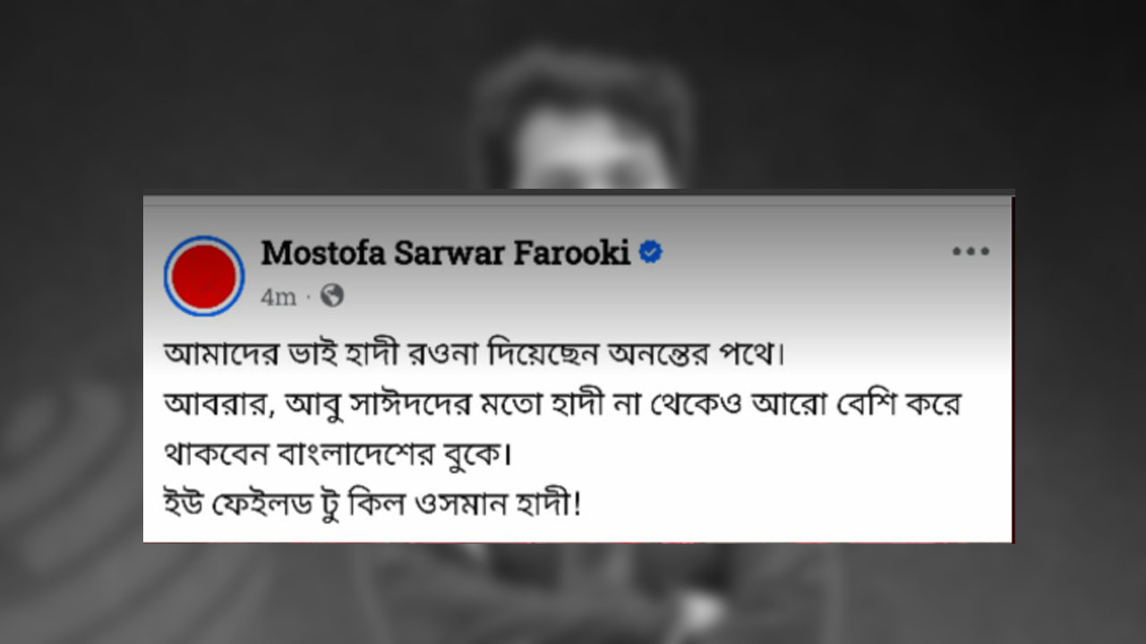 ওই পোস্টে বলা হয়, ‘ভারতীয় আধিপত্যবাদের মোকাবিলায় মহান বিপ্লবী ওসমান হাদিকে আল্লাহ শহীদ হিসেবে কবুল করেছেন।’