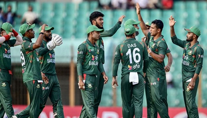 লিটন দাস, তানজিদ হাসান তামিম, নাজমুল হোসেন শান্ত (অধিনায়ক), তাওহীদ হৃদয়, মাহমুদউল্লাহ, জাকের আলী (উইকেটকিপার), তানজিম হাসান, মোহাম্মদ সাইফউদ্দিন, তাসকিন আহমেদ, রিশাদ হোসেন, তানভির ইসলাম।