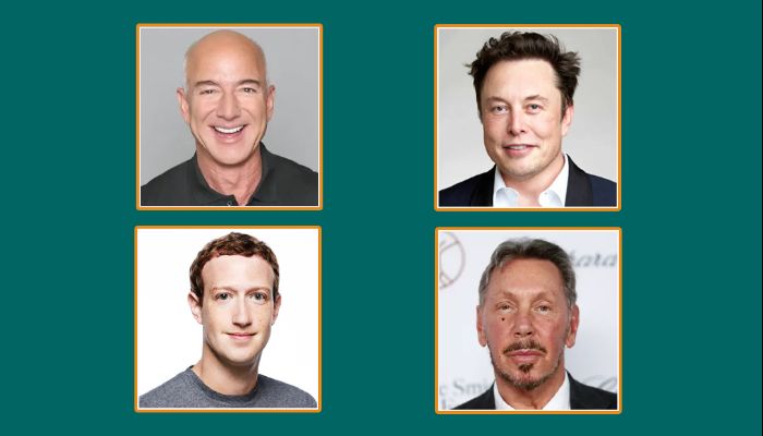 ইলন মাস্ক (টেসলা, স্পেসএক্স), ল্যারি এলিসন (ওরাকল), মার্ক জাকারবার্গ (মেটা), জেফ বেজোস (অ্যামাজন)।
